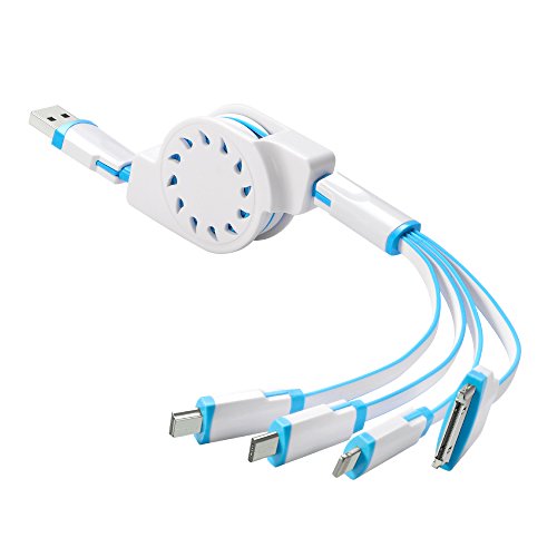 -. Title : USB Cable, IVVO Retractable 4 in 1 Multifunctional Universal USB Charger Cable with 8 Pin Lighting / 30 Pin / Micro USB / Mini USB Ports for iPhone, iPad, Htc, LG G3 G4 and More -3 Feet