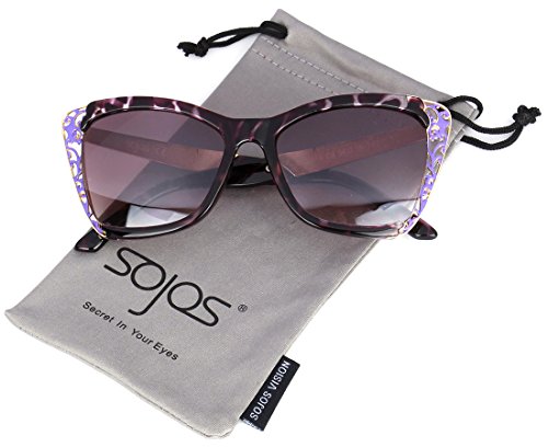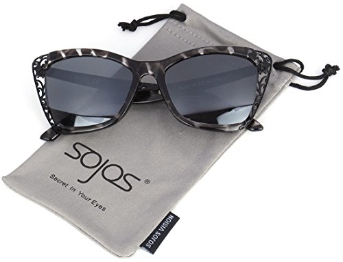 SojoS stylish bold cat eye womens sunglasses are made with a plastic based frame, hollow metal edge and polycarbonate UV protected lenses. These sunglasses are fashionable, vintage, creative, which are sure to be a huge heat.