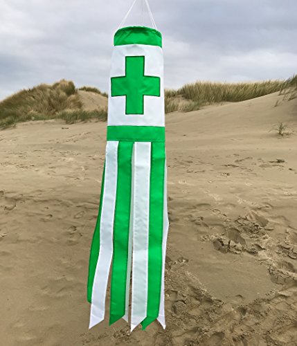 - In the Breeze Item #4999 - Green Cross Windsock is made with weather and fade resistant fabric and features an applique and embroidered design