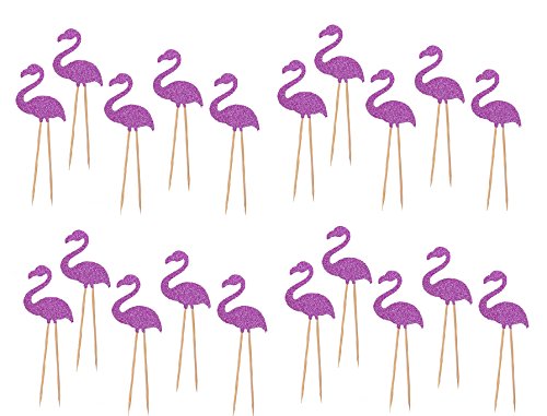 JANOU Hawaii Cake Topper Flamingo Cake Picks for Luau Beach Party Decoration Pack 20pcs