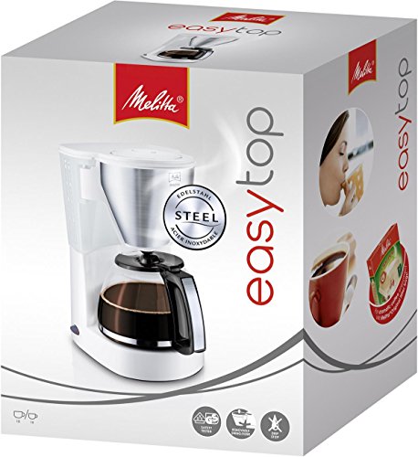 Lieferumfang: 1 Melitta 1010-03 wh weiss Edelstahl Easy Top Kaffeemaschine, inkl. Glaskanne. HxBxT: 30,3x17x22,4 cm