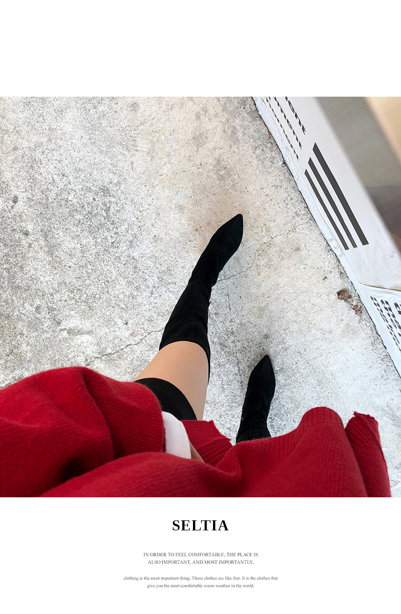 Slim line knee high boots.