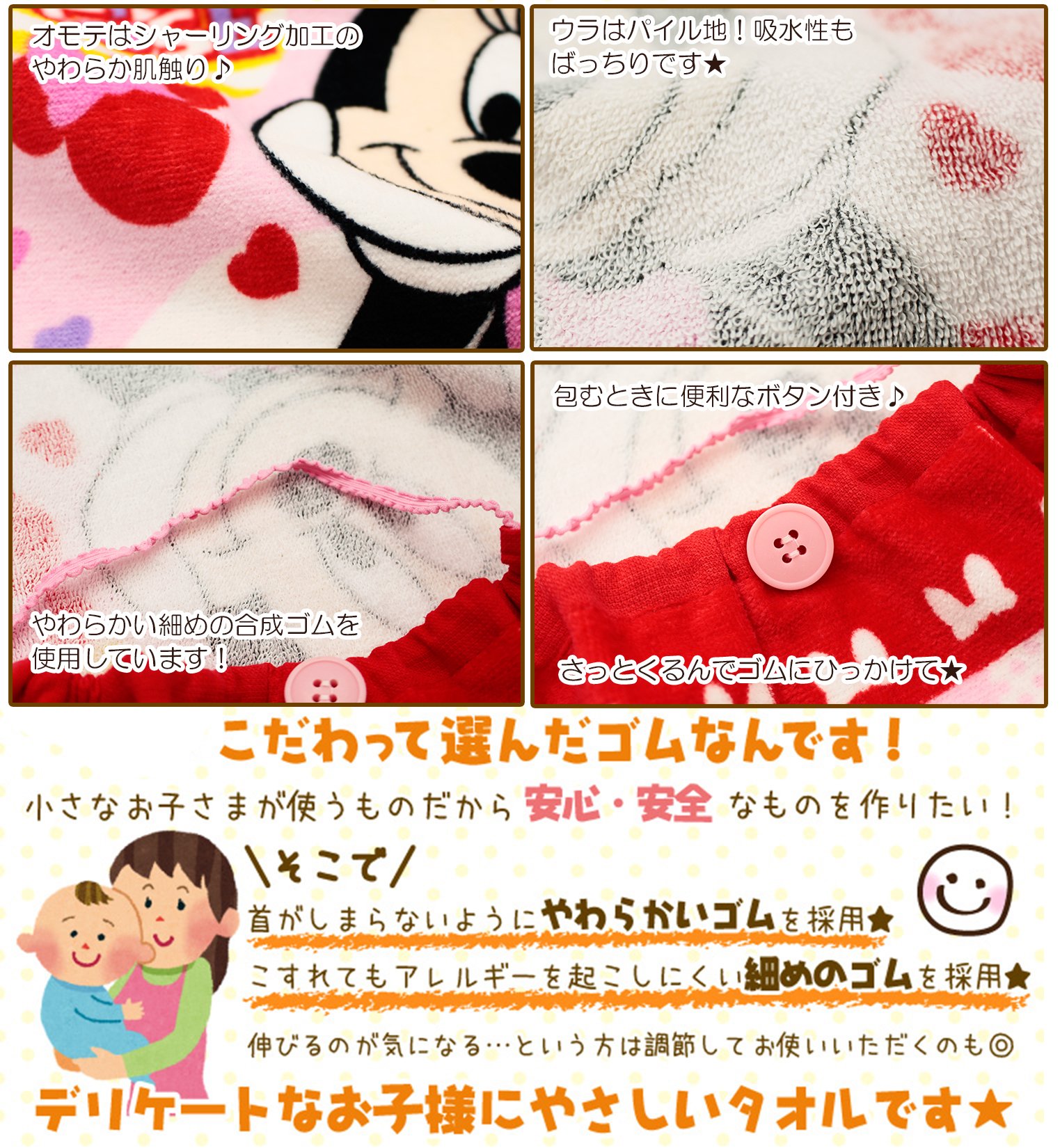 My daughter is very favorite because it is Minnie. It's comfortable because you do not have to carry two aprons and towels.