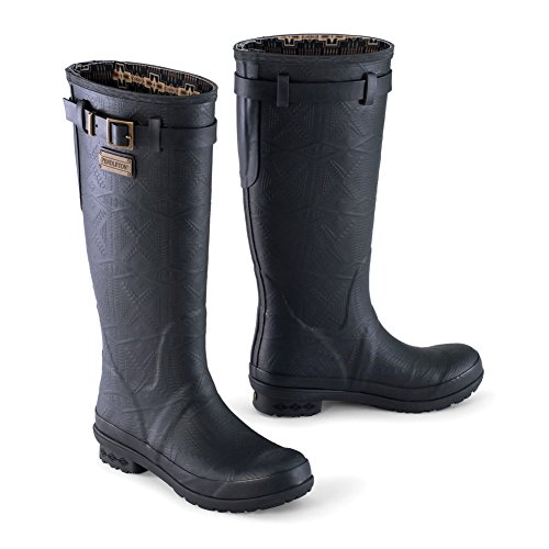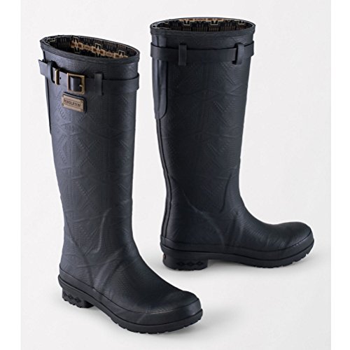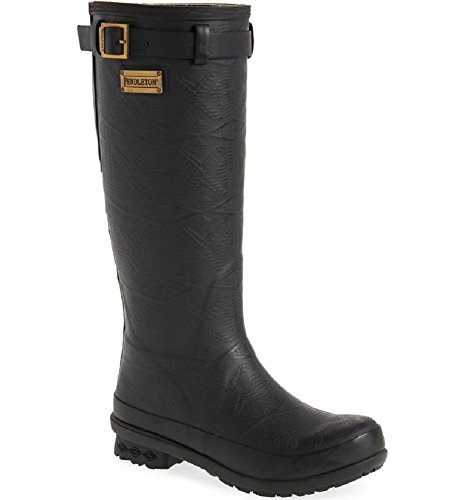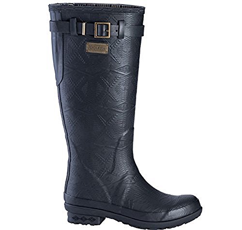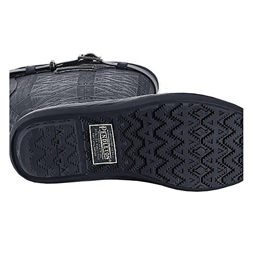 Studio : Pendleton Publisher : Pendleton Binding : Apparel Product Description These classic rain boots get a style upgrade from Pendleton. Go ahead and wear them all day: the internal shank system and cushioned insoles provide ample comfort. The back gusset and adjustable side buckle allow for a wide range of fit options. Constructed of scarlet premium rubber embossed with a geometric Pendleton design with no-slip soles and their signature Mountain Majesty tread. Moisture-wicking linings showcase Pendleton's iconic Harding pattern.?14" Shaft 0