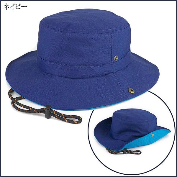 | サイドのボタンを留めることも出来るので、2通りの被り方が楽しめます。あごヒモも付いているのでアウトドアでも大活躍!!表面にコーティングを施した防水仕様ですので、雨が降っても大丈夫♪ |