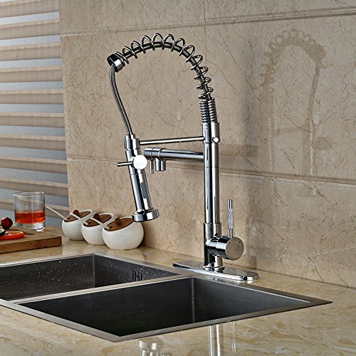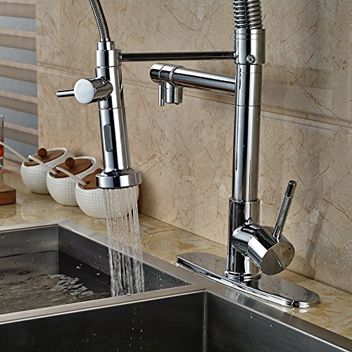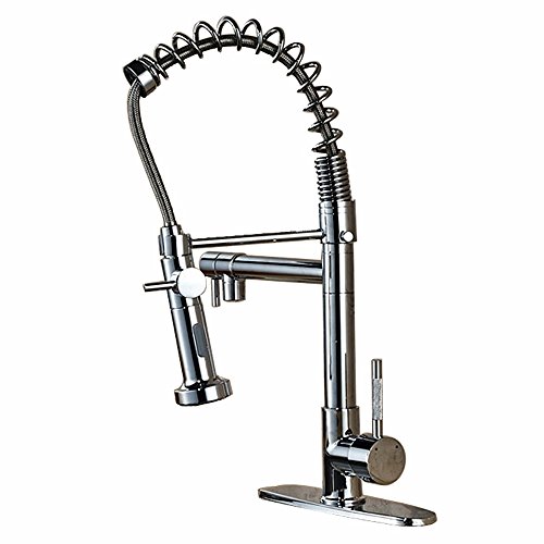 Zovajonia Solid Brass One Hole Deck Mount Kitchen Sink Faucet with Swivel Sprayer and Spout,Chrome Polished