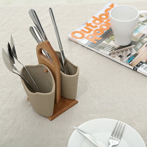 Studio : MyGift Publisher : MyGift Product Description Perfect for frequent entertaining and dining in various areas of the home, this dual-bin utensil caddy provides a convenient way to store utensils and easily carry them to the kitchen counter, dining table, or outdoor dining area. Featuring 2 removable flatware bins that can be easily cleaned, and which are capable of standing upright on their own, this handy kitchen accessory also includes a bamboo stand for added stability and easy carry of the bins when fully loaded. The gray lightly fired clay blends nicely with modern decors, as does the bamboo, making this convenient stand a natural complement to contemporary decors. Be ready for indoor or outdoor entertaining with this stylish flatware caddy. **Official MyGift® Product** Flatware and utensils not included. Approximate Dimensions (in inches): Overall - 7.8 H x 6.1 W x 4.9 L. Wood stand - 7.8 H x 4.13 L x 3.66 W; Each cup - 3.94 H x 4.92 L x 2.17 W. 0 |