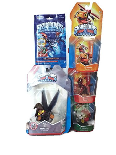-. Title : Skylanders Trap Team characters figures with bonus micro comic bundle. Short Cut, Chopper, Torch, Sure Shot Shroomboom and micro comic.