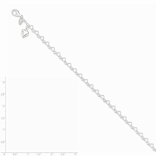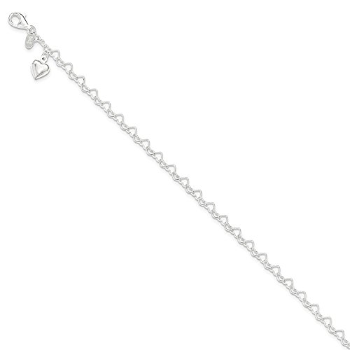 Solid 925 Sterling Silver Heart-link with Heart Pendant Charm Anklet 10" - with Secure Lobster Lock Clasp