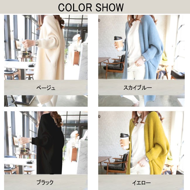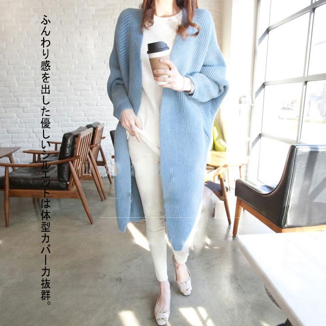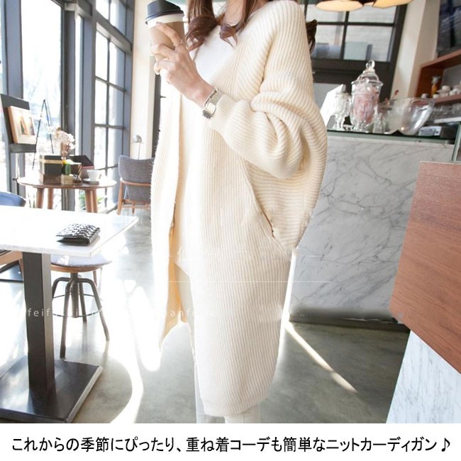 | 商品名 | ニットカーディガン レディース ロング丈 ビッグシルエット オーバーサイズ 無地カーデ ボリューム袖 ざっくり編み ドルマンスリーブ袖 2018春新作 |