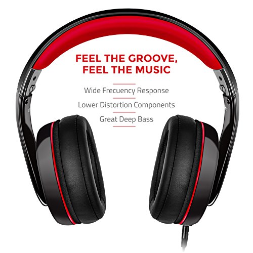 Sentey Warp Stereo Headphone 3.5mm Connector High Definition (Black/Red) GS-4420 Features Best Bass Superior Response - High Definition Stereo Headphones