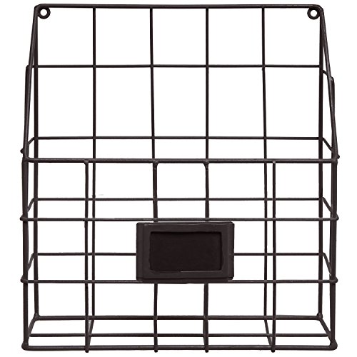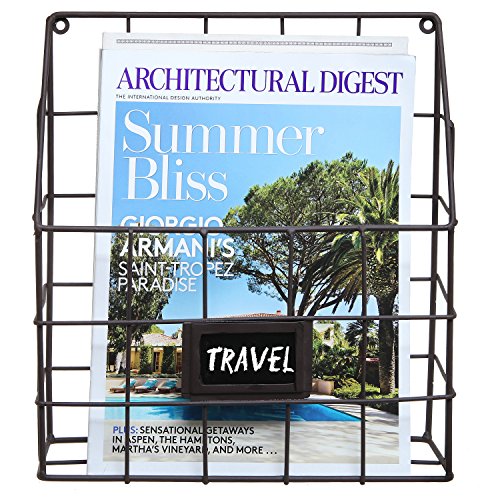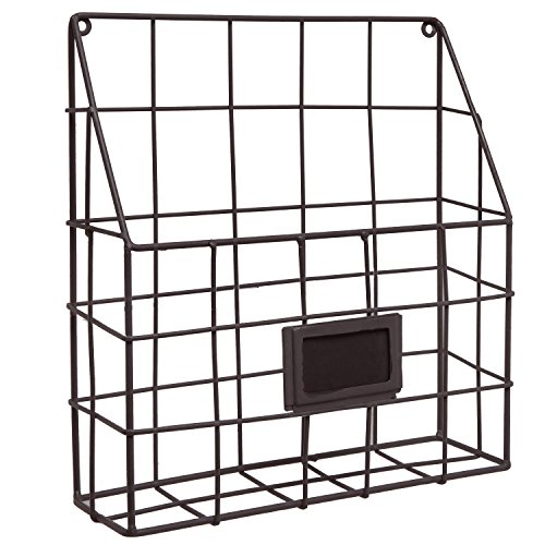 Brown Metal Wire Wall Magazine Rack Bin / Newspaper Rack / Wall Mounted Mail Sorter with Chalkboard Label