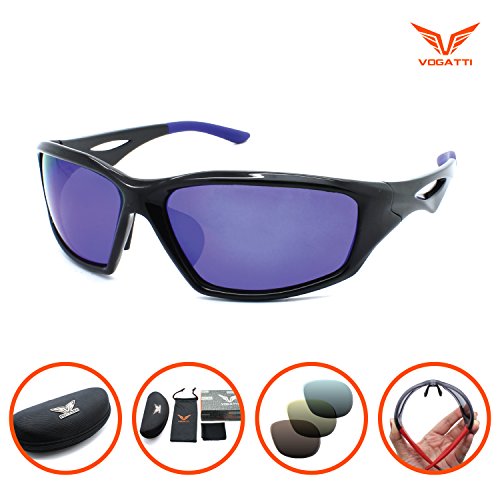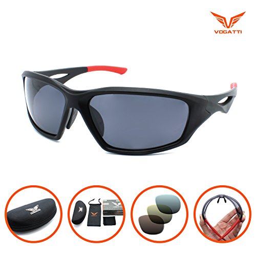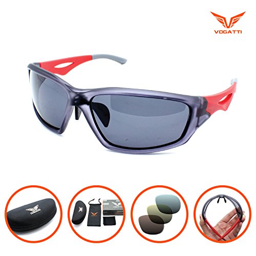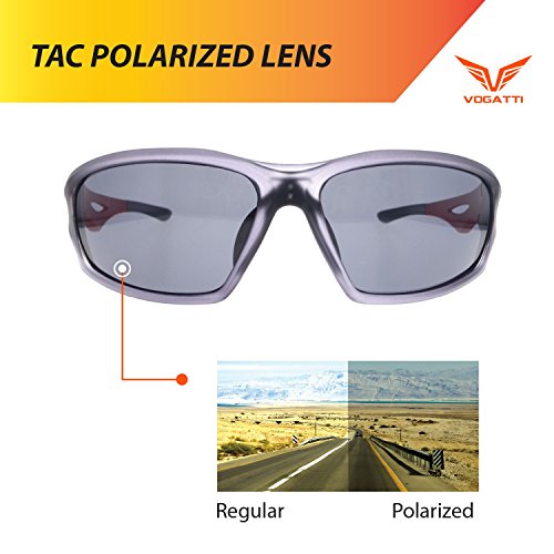 Vogatti Sports Sunglasses with TR90 Ultra-Light High Quality Material Vogatti Sunglasses are made to be durable to enhance outside activities experiences, such running, fishing, and target shooting. Lens are made of shatterproof unbreakable PC (Polycarbonate) material are durable enough for long time use. The Polarized tint is meant to protect from the harmful UV and UVB ray lights, and to provide a HD visual clarity!