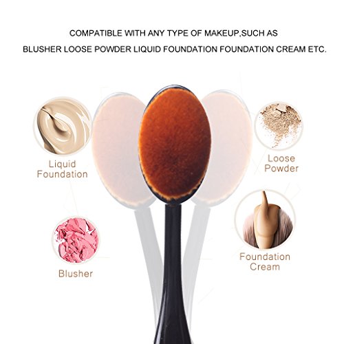 - All IN ONE:5 Pieces different size brushes can be as powder foundation brush,liquid foundation brush,concealer brush, contour brush, eyeshadow brush, eye brows brush, lip brush and eyeliner brushes,ect.