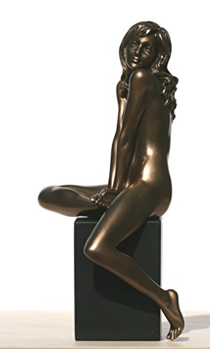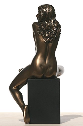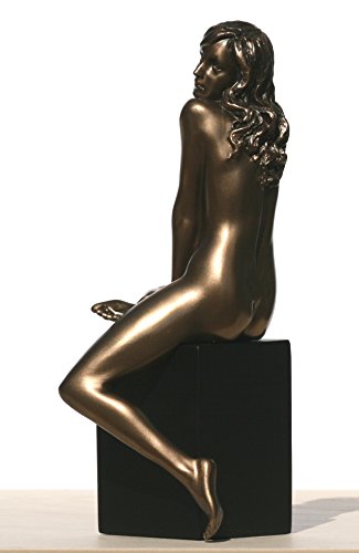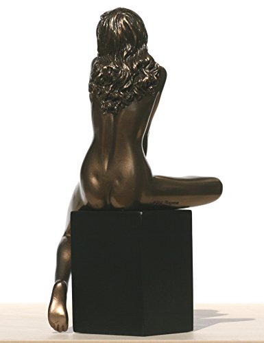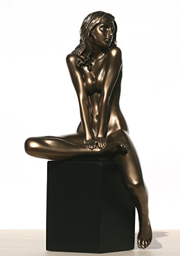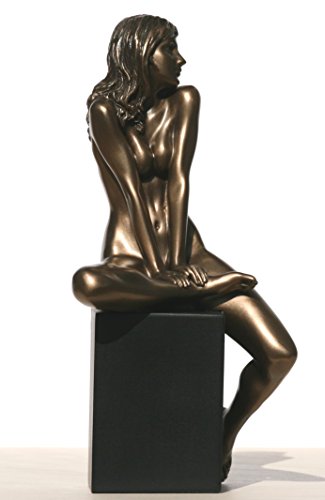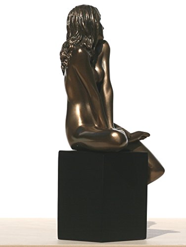 -. Title : 7.88 Inch Nude Female Statue Figurine Sitting on Plinth, Bronze Color