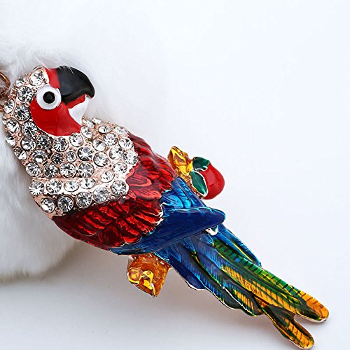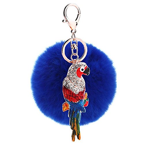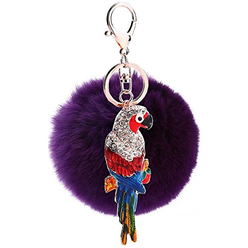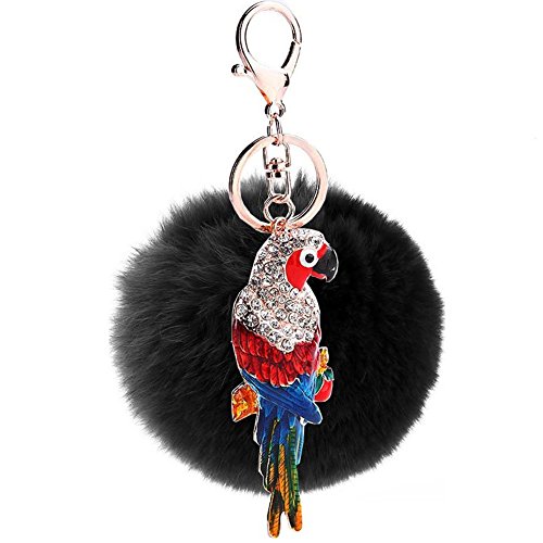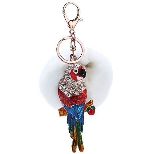 ACTLATI Elegant Parrot Keyring Fluffy Ball Keychain Faux Crystal Handbag Keyfob Decor