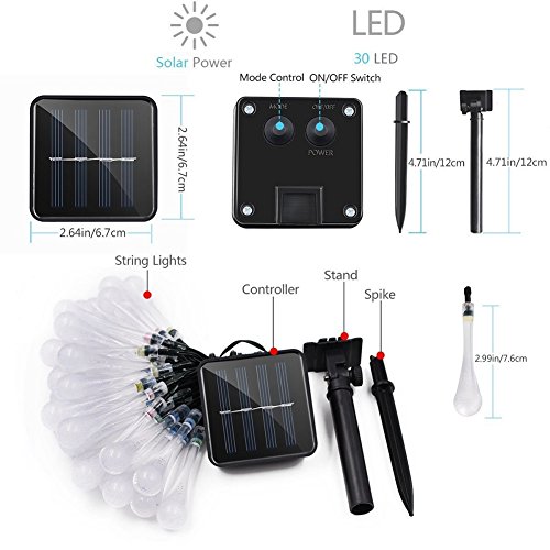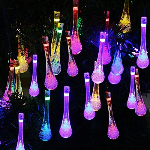 -. Title : Mayoya Solar String Lights 20 Feet 30 LED Water Drop 8 Modes Waterproof Christmas Fairy Lights for Home,Garden,Outdoor,Patio,Christmas Tree,Parties and Holiday Decorations (Multi Color)