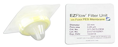 EZFlow Sterile Polyethersulfone (PES) Syringe Filters, 0.45um Membrane for Clarification or Prefiltration, 33mm, 100/PK