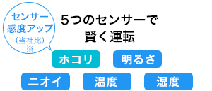 더 미세한 입자까지 감지 할 수있는 고감도 먼지 센서. 기존 제품의 먼지 센서보다 감도를 향상. 꽃가루 등의 큰 입자뿐만 아니라 더 미세한 입자까지 감지합니다.