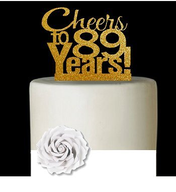 CakeSupplyShop Item#089CTA - 89th Birthday / Anniversary Cheers Super Gold Glitter Sparkle Elegant Cake Decoration Topper