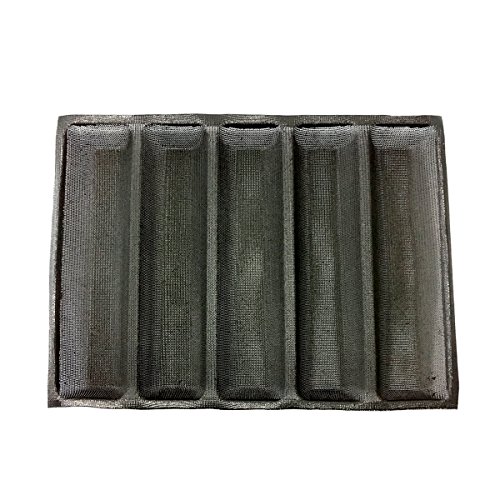 Bluedrop Silicone Bread Forms Oblong Shape Hot Dog Bread Molds Non Stick Bakery Tray Silicone Coated Fiber Glass Loaf Sheets 5 Caves 12" Shape