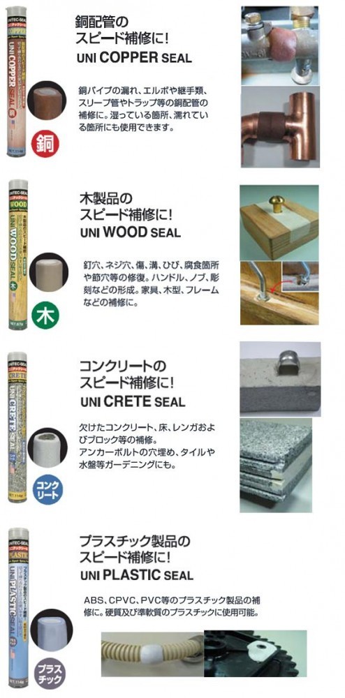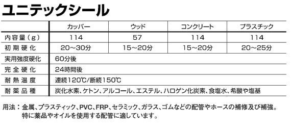 本製品は2成分の2層になっており、手で練り合わせることで化合し、素早く簡単に補修できるエポキシパテです。完全硬化後は、穴あけ、切断、研磨、着色などの加工も可能です。 製造国:アメリカ 素材・材質:エポキシ樹脂 ※サプライヤー直送品  ご注文後、当日~1営業日後の出荷となります【商品名】UNITEC ユニテック 強力固着 補修パテ ユニテックシール プラスチック