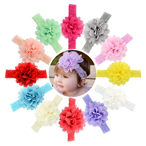 Welandtech Baby Girls Chiffon Flower Headbands Elastic Lace Hair Band 12 Value Pack