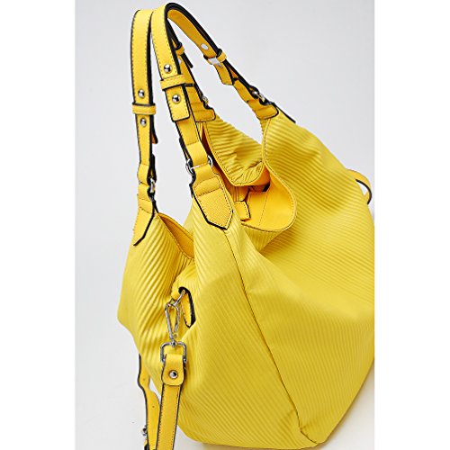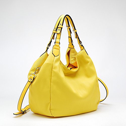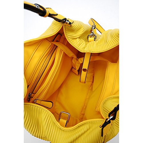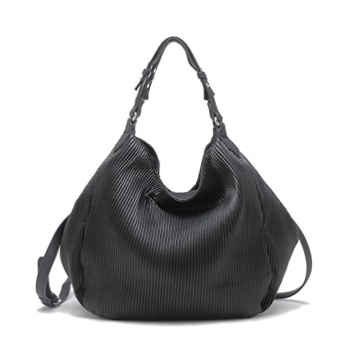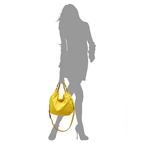 Made from synthetic leather with silver-tone hardware. Dual carrying handles, detachable shoulder strap. Zip top closure. Spacious fully lined fabric compartment. Interior zip and slip pockets. BEFORE PURCHASING, PLEASE COMPARE THE SIZE OF THIS HANDBAG TO ONE OF YOUR OWN FAVORITE BAGS.Feature