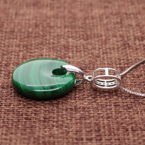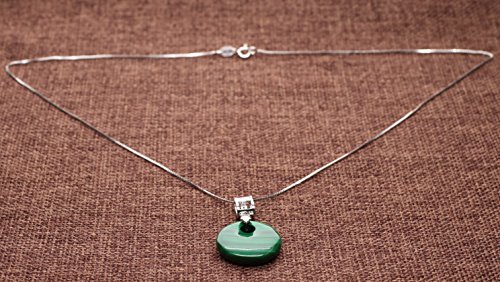 -. Feature : Pendant: 9*5.5mm/0.35*0.22" Pave Charm; Malachite Stones (Diameter: 2cm/0.8") / Chain: 18"/45cm 925 Sterling Silver / Fashion Jewelry Style, Perfect for Formal Dresses, Party, Weddings, Banquets; Exquisite Workmanship, Wearable and Shining / Malachite absorbs negative energies and pollutants, balances mood swings and heals cramps / Come with a Gift Box; 180-Days warranty & free replacement