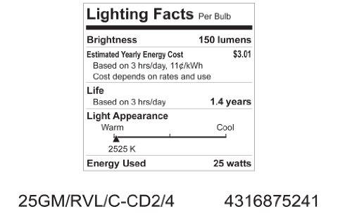 GE Lighting 75241 Reveal 25-Watt, 152-Lumen G16.5 Light Bulb with Medium Base, 8-Pack