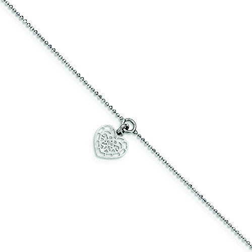 -. Title : Sterling Silver With Heart Charm W/.5inch Extension Anklet - 10 Inch