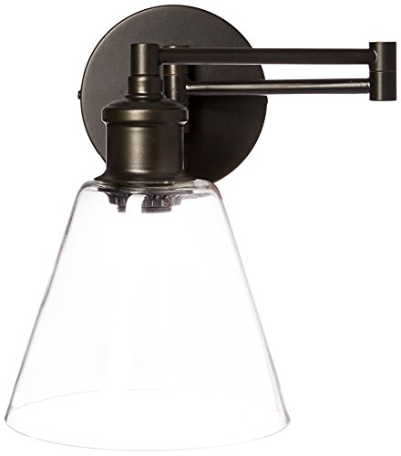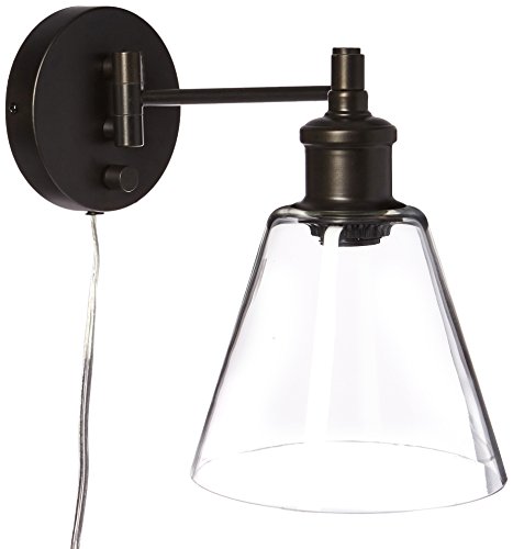 Globe Electric LeClair 1-Light Plug-In or Hardwire Industrial Wall Sconce, Dark Bronze Finish, On/Off Rotary Switch on Canopy, 6 Foot Clear Cord, 65311