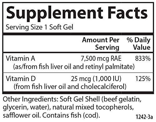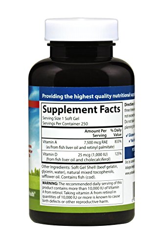 Studio : Carlson Labs Publisher : Carlson Labs Binding : Health and Beauty Product Description Carlson Vitamins A D provides 25,000 IU of vitamin A from palmitate and fish liver oil and 1,000 IU of vitamin D from fish liver oil to support healthy vision and immune system function. 0