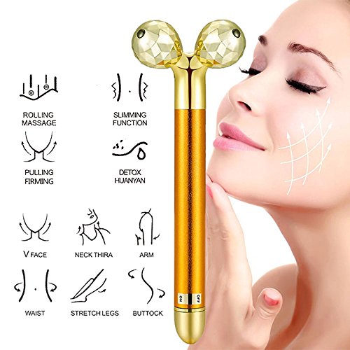 Beauty Bar 24k Golden Pulse Facial Massager, 3D Roller Face Massager Electric Sonic Depuffer Gold Lift Facial Bar Japan (Import)