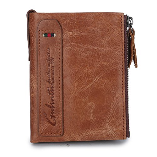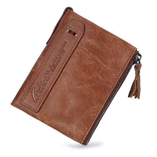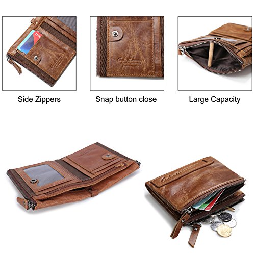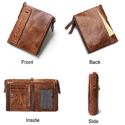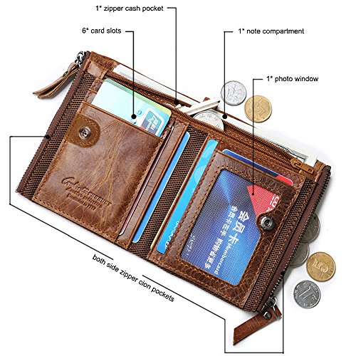 -. Feature : DIMENSION: 9.5*2.5*12 cm (W*D*H), this is a small leather bifold wallet for men fit for most front pockets, easy to carry with daily use. / 100% REAL LEATHER WALLET. As genuine cowhide leather wallet come with natural special scratches, hand-crafted retro cowhide leather, soft and comfortable, it will become brighter and brighter over time. / FUNCIONAL. The bifold wallet for men come with 6 card slots, double zipper pocket, 1 mesh id window, 1 zipper bill compartment, 1 bill compartment. Perfect organize your bills, coins, cards, keys and other small items in this small wallet. Meet all your daily needs in any occasion such as casual,school day,business and so on. / DOUBLE ZIPPER DESIGH. Double zipper independent pocket, according to your needs convenience storage classification, fashion, clean and tidy wallet for men. / GIFT BOX INCLUDED. Every wallet come with a vintage style packing box, It is one of the most special gifts for men Birthdays, Anniversaries, Father's Day, Christmas and other Special Occasions.