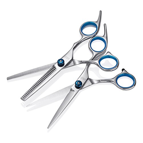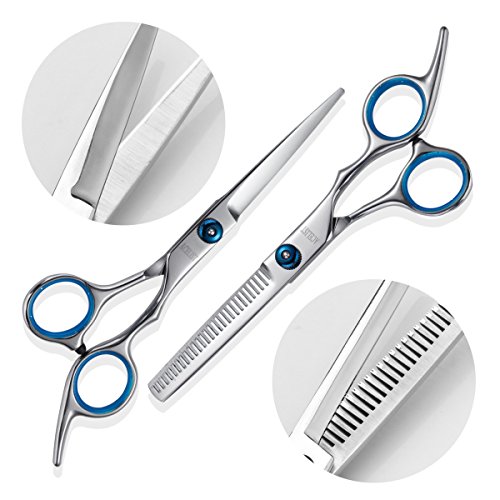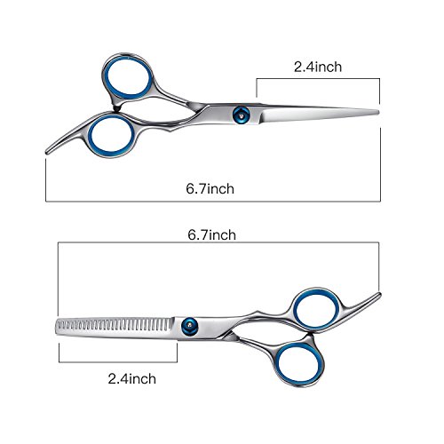 - ✄ Package contains two shears. 1 X Professional Hair Thinning Shear; 1 X Professional Hair Cutter Shear. Both are of High quality with fine adjustable tension screw, hand-sharpened cutting edges and precise blade.