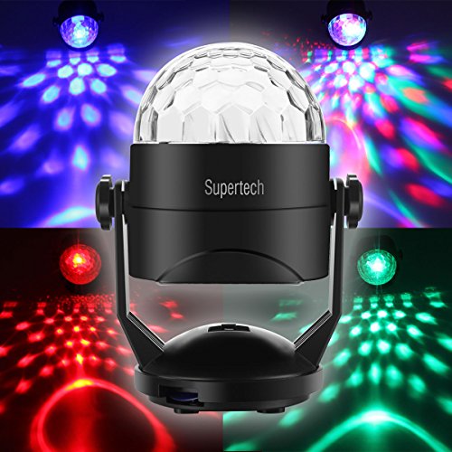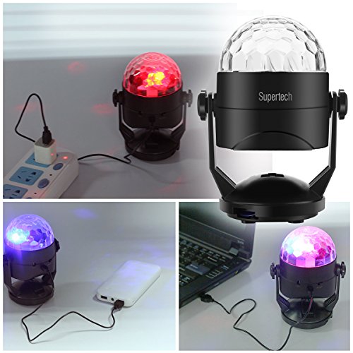 Party Lights,Supertech Micro USB Port Stage Lights Sound Actived Auto 7 Color Changes RGB Rotating Stage Lighting with 3 x AA Battery Operated ( Not Included)for KTV Xmas Party Wedding Show Black