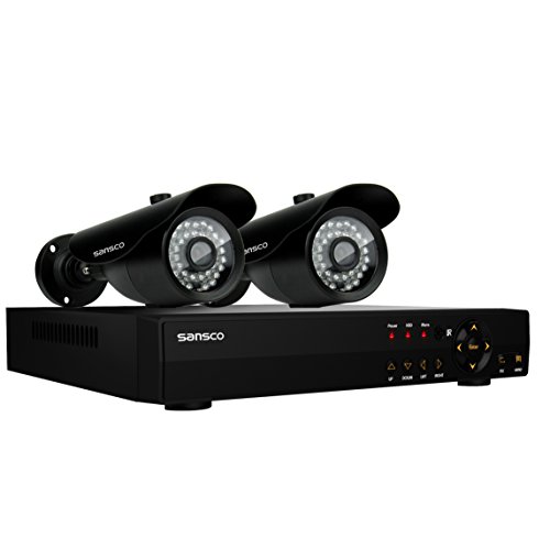 [UPGRADED] SANSCO Smart CCTV Security Camera System, 4-Channel 1080N DVR Recorder with 2x HD 1.0MP Outdoor Cameras (1280x720 Pixels, Rapid USB Storage Backup, Vandal-Proof, Hard Drive NOT Included)