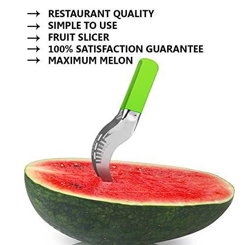 - ★ FRUIT SLICER - Easy to use, Safe for you hand, Useful for BBQ's, partys in the Summer. This watermelon knife is a smooth cut and a perfect slice everytime.