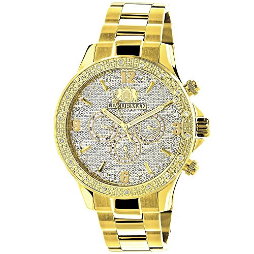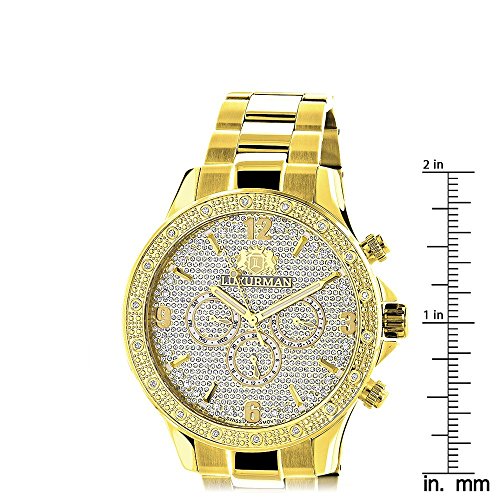 -. Feature : This Luxurman Diamond Watch showcases 0.2 carats of genuine diamonds, and features 18K yellow gold plated case. / Fine Swiss-made Quartz. / Retail packaging with 2 extra leather bands. / Oversized 44mm stainless steel case. / Watches Ship out Insured with signature tracking from NYC Diamond District.