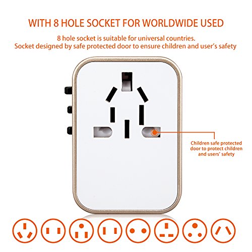 CHARGE 5 DEVICES - Power Up faster without taking multiple chargers on vacation! Compact and Powerful World Adapter Plug allows SIMULTANEOUS use of the AC Power Socket and 4 USB Ports.