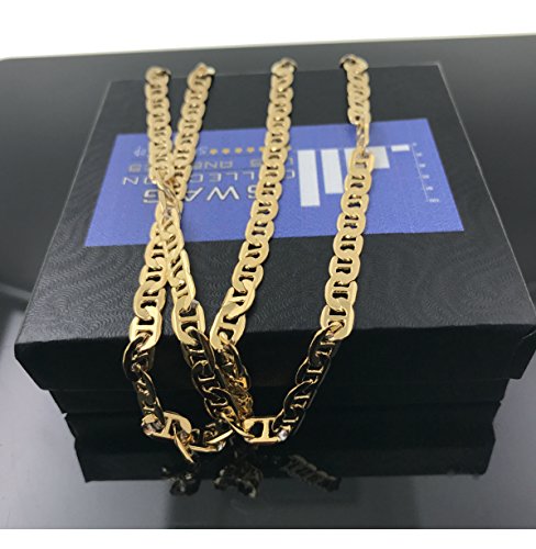 -. Feature : ►►CRAZY LOW INTRODUCTORY PRICE FOR AMAZON, This Is For A Limited Time Only! Ideal for men, women, teens. Makes a great GIFT--Comes In A Small Cotton Filled Swag Collection LA Gift Box / ►►BEWARE OF CHEAP IMITATIONS! LIFETIME WARRANTY GUARANTEED ONLY WHEN SOLD BY SWAG COLLECTION LOS ANGELES! Real 18Karat gold, laid over a heart of semi-precious metals. 5MM 22" 24" & 28". more than 20mls of 18 karat gold per chain - 10 times more gold than in the cheaper electroplate that changes color quickly, WE USE LATEST PVD PROCESSING TECHNOLOGY to provide a good gold color and a tarnish resistant surface. / ►►WE ONLY USE 18k GOLD IN ITS PUREST FORM which has a distinctive shinny pure gold look instead of 10k or 14k! No cheap metals copper (turns green) or nickel which can irritate your Skin, Chains have been tested and they are NICKLE, LEAD and ALLERGY FREE so your skin is safe with our chains. / ►►FOR OUR CHAIN WE USE SEMI-PRECIOUS ALLOY OF THE BEST BONDING METALS to ensures the LOOK OF SOLID GOLD and LONG LIFE of the item. Feel Free to check out our matching Bracelets! ►WE USE LATEST PVD PROCESSING TECHNOLOGY to provide a good gold color and a wear resistant surface. Email us for the different sizes. / ►►100% UNCONDITIONAL FREE LIMITED LIFE TIME GUARANTEE AND REPLACEMENT FOR ALL SWAG COLLECTION LA JEWELRY ITEMS! Due to the fact that each piece is carefully hand made, sizes may vary just a slightly.