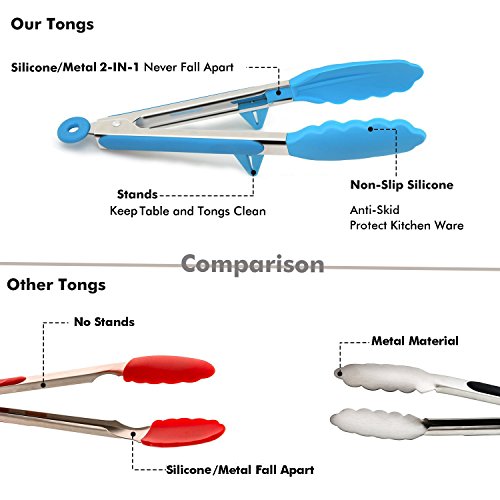 - Tongs set of 3: Our grilling tongs and silicone tongs set including 7", 9", and 12" tongs, meet your requirements
