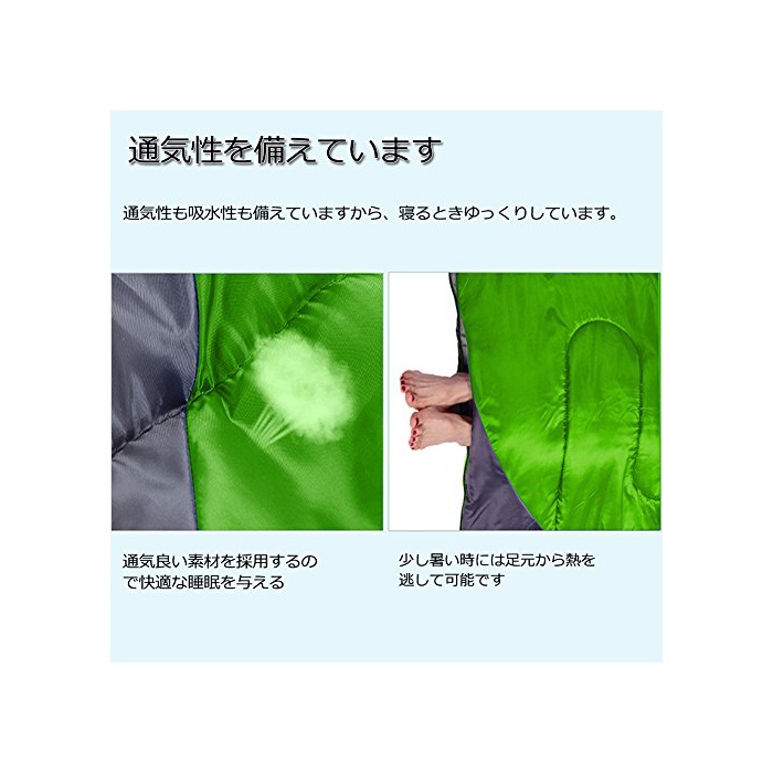【봉투형 쾌적 사용】봉투형의 특징은 처음부터 발밑까지 같은 사이즈에 만들어져 있으면 무렵입니다.풀 크로우즈부터 풀 오픈까지 패스너 개폐하는 것 를 할 수 있습니다.패스너는 침낭의 발밑까지 연기(연장)되어 있으므로,자유로우 개폐 가능해서,거북감의 조금 사양입니다.매우 쾌적합니다.풀 오픈에 자유로운 사용할 수 있는 때문에,여름의 더운 시기 등은 요에 나가 옵니다.