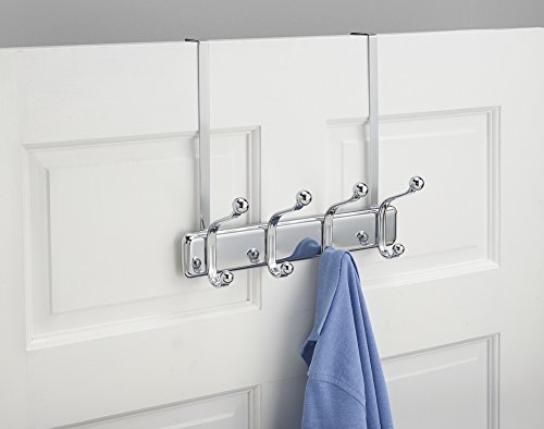 mDesign Over the Door 8-Hook Rack for Coats, Hats, Robes, Towels - Chrome