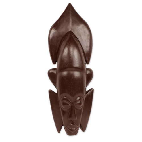 NOVICA Decorative Large Sese Wood Mask, Brown 'Wonderful Love'