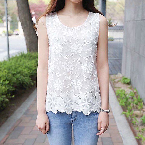 | 商品名 | ノースリーブ 花柄 シフォン レーストップス |