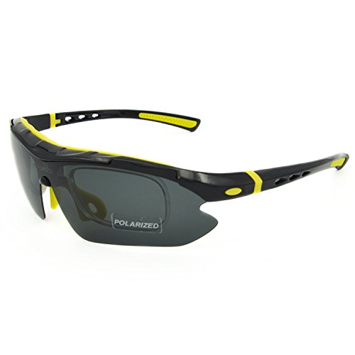Package: 1*Sport Glasses Frame (Inner frame for shortsighted lenses) 5*Pairs of Polycarbonate Lenses (The black one is polarized lens) 1*Glasses pouch 1*Glasses Cloth 1*Elastic Sport Belt 1*Movement Head Harness 1*Hard Protection Box
