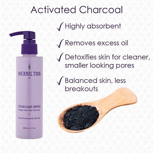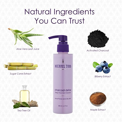 Michael Todd Charcoal Detox Deep Pore Gel Cleanser, Activated Charcoal Clarifying Face Wash for Oily Skin, 6.7 Ounce Pump Bottle