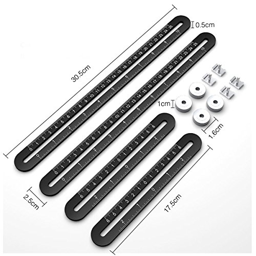 - EASY TO USE – Just place onto your work area, slide the rulers into the shape you need, and tighten the screws. Then you have your flawless measurement which can now be transferred and traced onto any materials.
